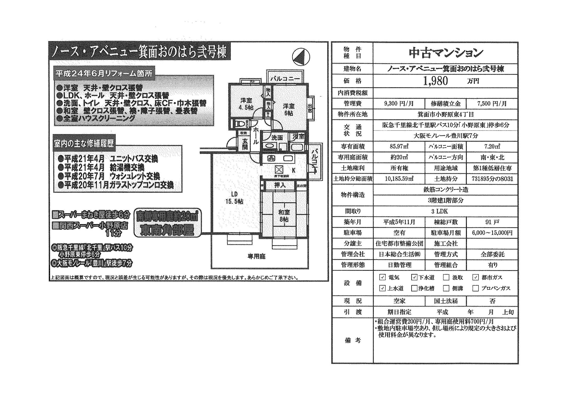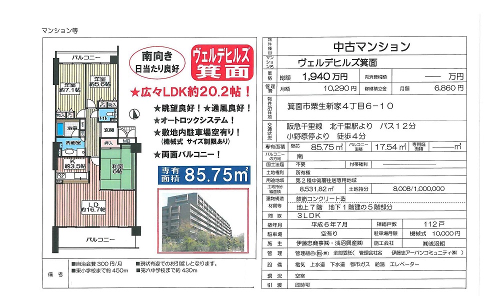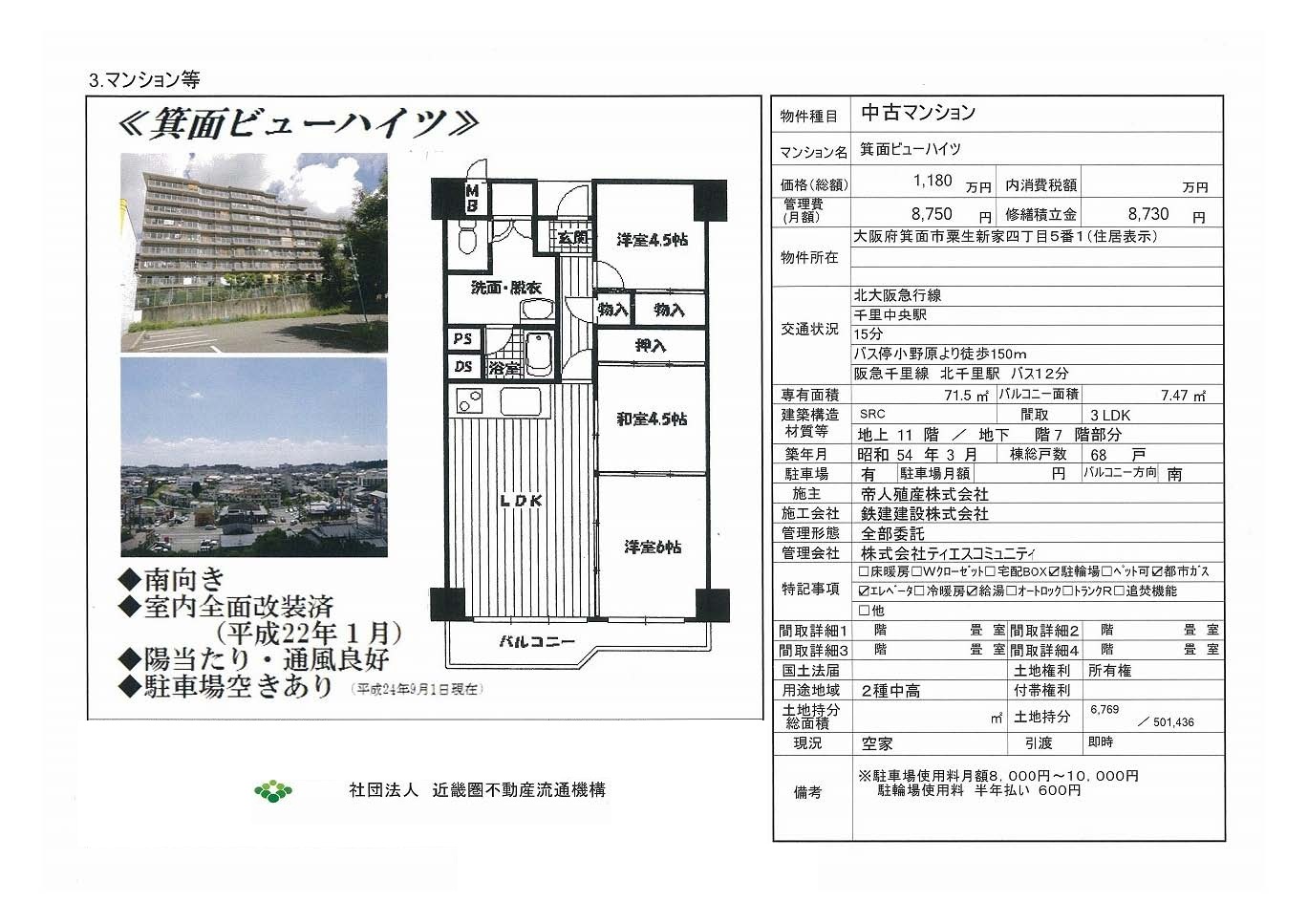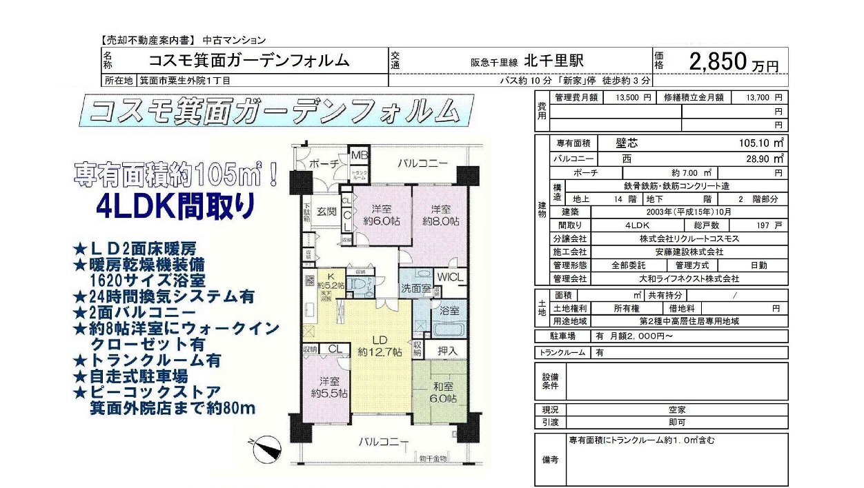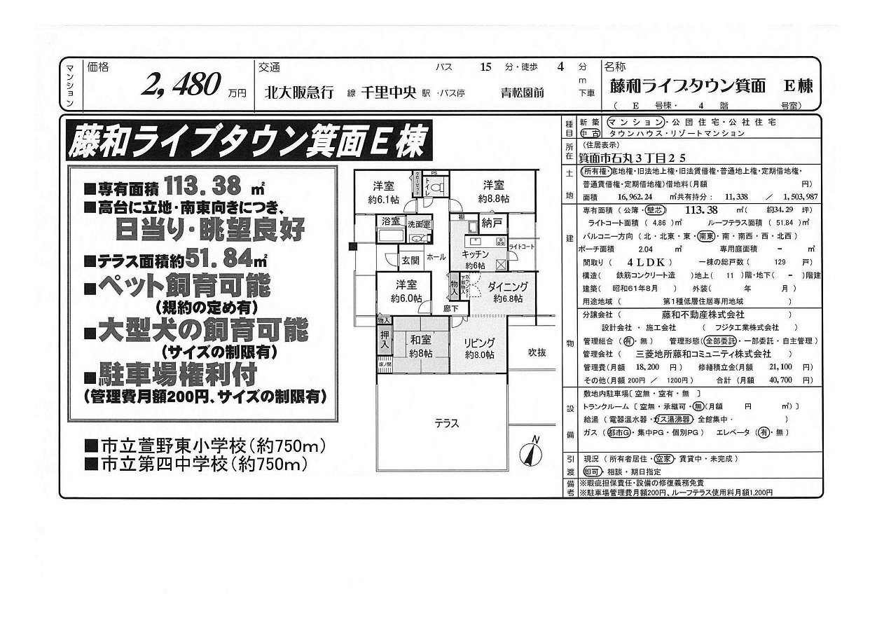 | 千里中央 徒歩8分 |