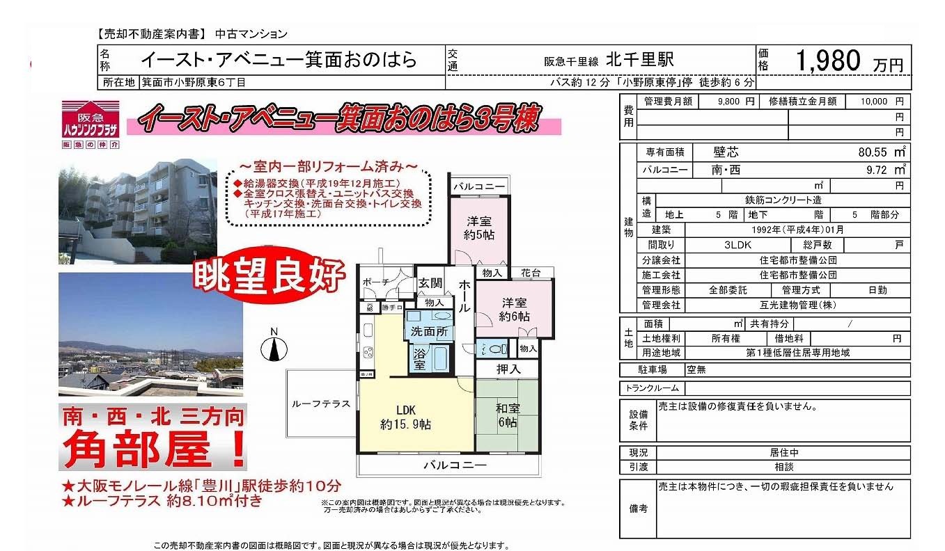| 北千里 バス15分 停歩5分 |