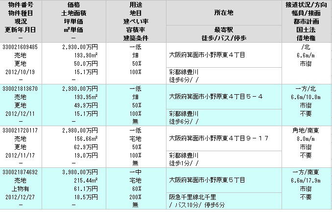 小野原西、彩都の不動産物件 (土地 中古戸建て 中古マンション 新築戸建て)